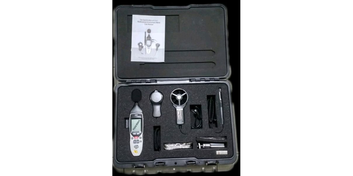 | Description The digital Multifunction Environment Meter has been designed to combine the functions of Sound Level Meter, Light Meter, Humidity Meter Temperature Meter and CFM/CMM Thermo-Anemometer (859B 5in1). It is an ideal Multifunction Environment Meter Instrument with scores of practical applications for professional and home use. ●The Sound level function can be used to measure noise in factories, schools, offi ces, home, etc, checking acoustics of studios, auditoriums and hi-fi installations. ●The Light function is used to measure luminance in the fi eld. It is fully cosine corrected for the angularincidence of light. The light sensitive component used in the meter is a very stable, long, life silicon diode. ●The Humidity/Temperature uses a humidity/semiconductor sensor and K type thermocouple. ●CFM/CMM Thermo-Anemometer is suitable for use in a wide variety of applications, including plant maintenance operations, environmental analysis, fume hood testing, and HVAC system assessment |