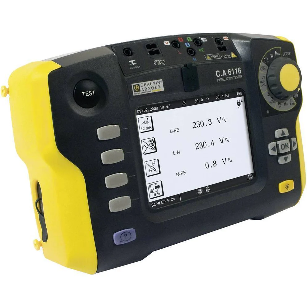 DescriptionThe Chauvin Arnoux CA6116N is a comprehensive multifunction installation tester for verifying electrical installations in compliance with international standards such as IEC 60364-6. It is suitable for all neutral systems (TT, TN, and IT) and can be used in residential, commercial, and industrial sectors. |
