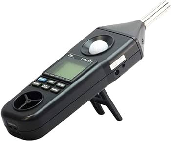 Lutron LM-8102 is a 5 in 1 METER - Anemometer, Humidity meter, Light Meter, Thermometer, Sound level meter Sound level meter: 30 to 130 dB, auto range. Humidity: 10 to 95 %RH, Temp.. (°C/°F). Anemometer: 0.4 to 30 m/s, Temp.. (°C/°F). Light: 0 to 20,000 Lux, 0 to 1,660 Ft-cd, auto range. Type K Thermometer: -100 to 1300 °C, °C/°F. Sound level meter meet IEC 61672 TYPE 2. Data hold, Record (Max., Min.), RS232/US |