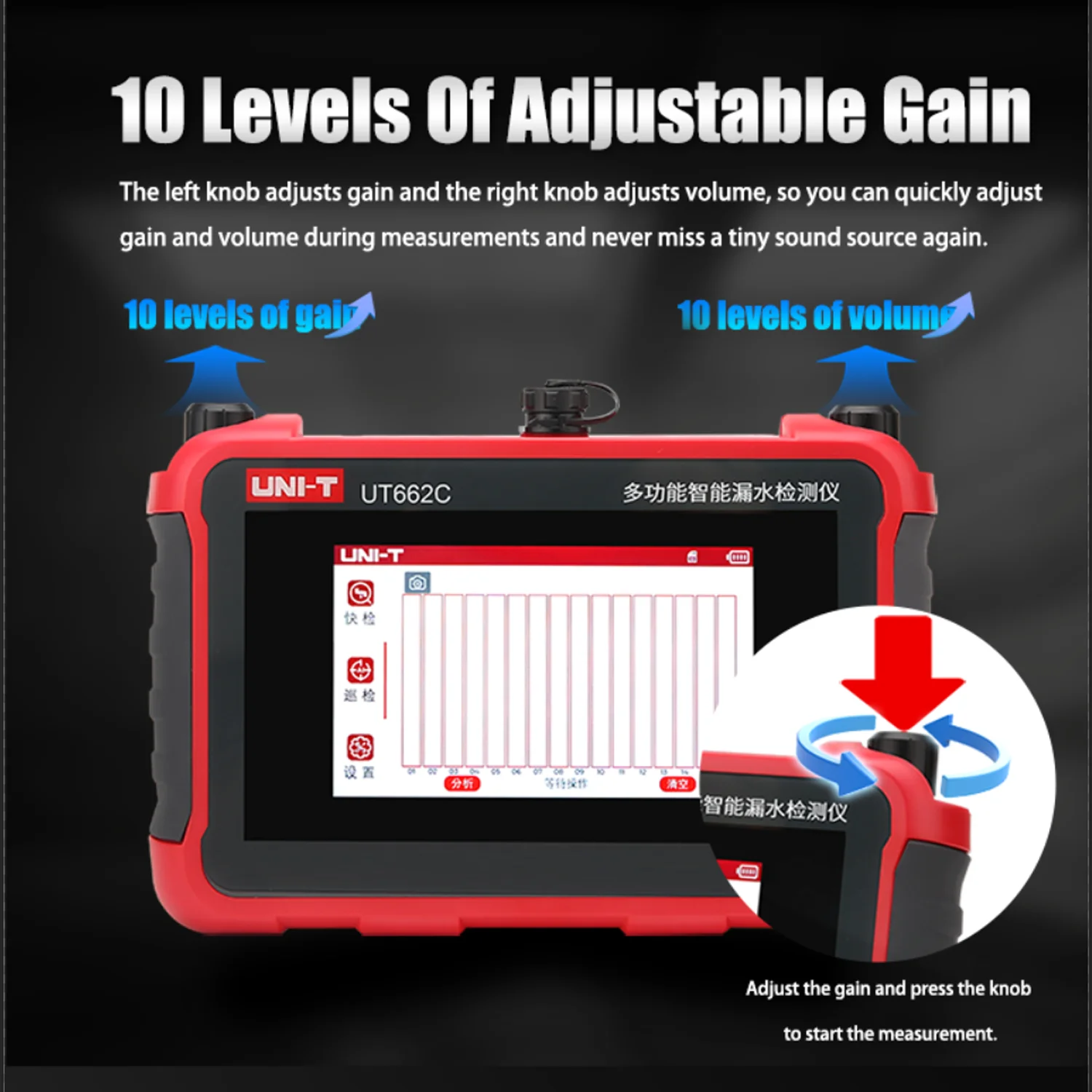 Recording Function: Collects on-site leak sounds for archiving or comparison of multiple leak recordings. The recording time is 10 seconds.